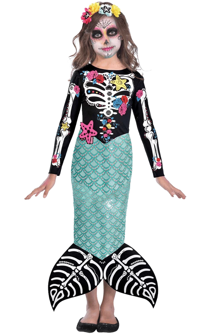 Celebrate Dia De Los Muertos or Halloween with Kids Day of the Dead Mermaid Costume.