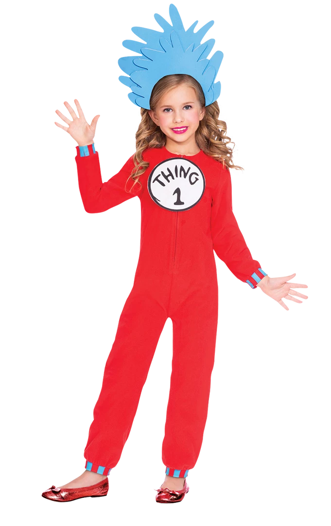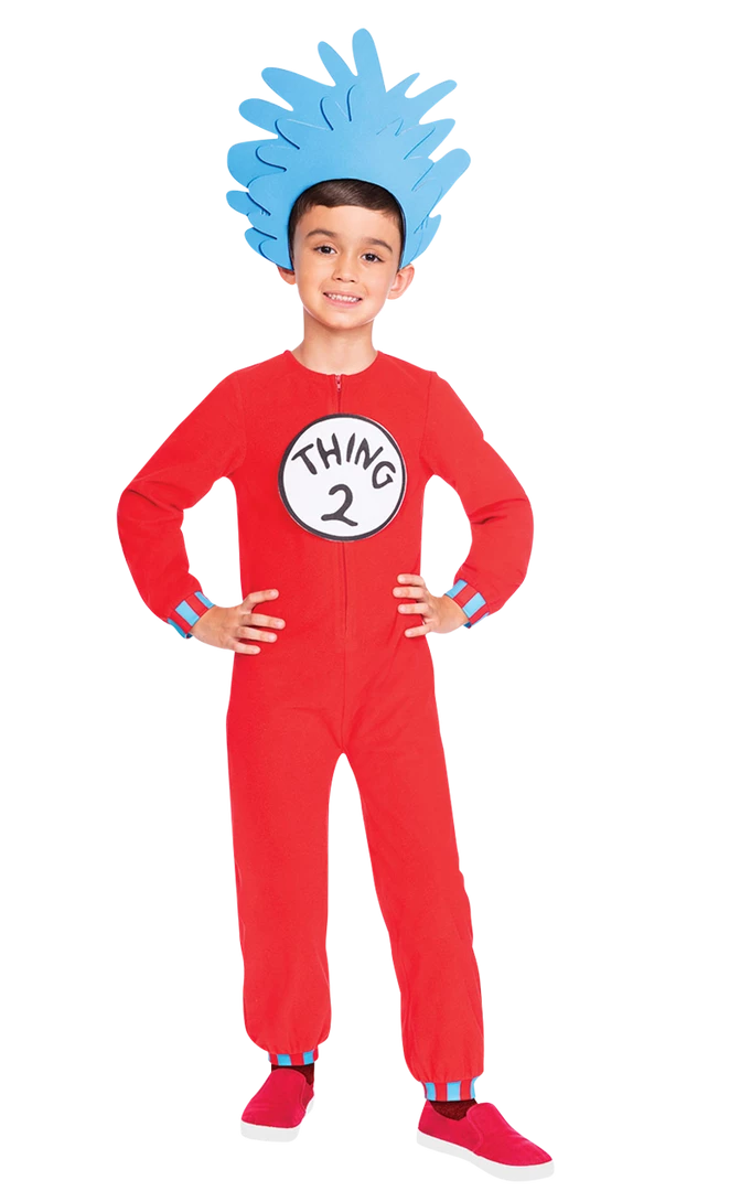 This World Book Day take a step into the brain of the mad and clever Dr Seuss! The ultimate costume for siblings, twins or best friends, this officially licensed Kids Thing 1 & 2 Costume will have your little one looking like they’ve jumped straight out of The Cat in the Hat book! Featuring one bright red jumpsuit and blue foam headpiece an and interchangeable “Thing 1” and “Thing 2” chest badge. Let your child or children rock up to school as their favourite imaginary mischief making characters, and share the celebration of Dr Seuss.