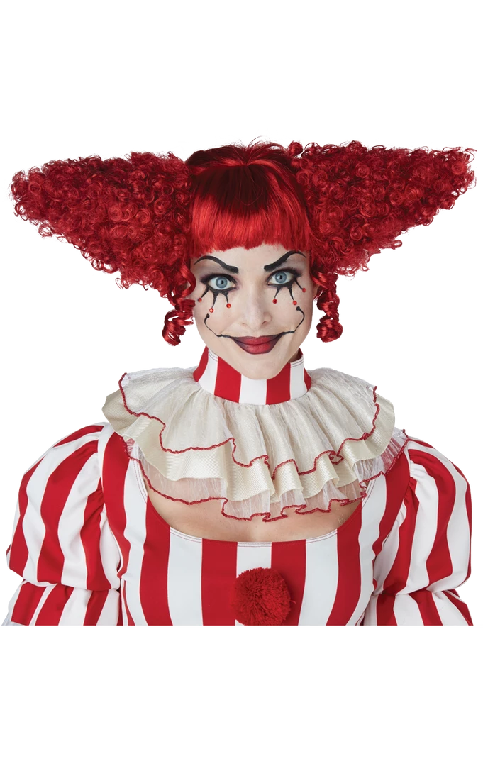 If coulrophobia is the fear of clowns, what’s the fear of their creepy hair? Complete your frightening Halloween clown costume with the Creepy Clown Dark Red Wig, perfect for Pennywise, or any other clown that could come to mind. You’ll be the ultimate movie monster from your toes to your pointy red wig!