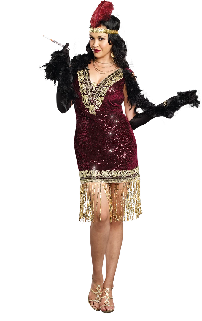 Want to shake your tassels about at the roaring 1920’s party? Now you can in this Sophisticated Lady fancy dress costume! Sequined dress with gold details, and includes sequin headband with feather.