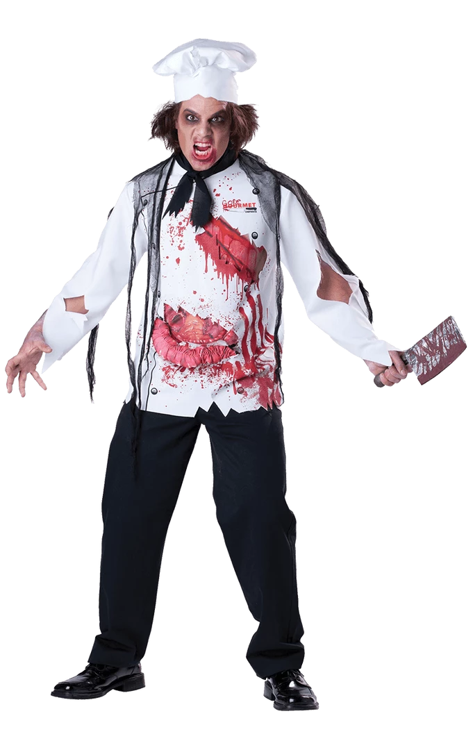 He’s unpredictable, he’s angry and he’s blood thirsty. Maybe that sounds like your average heat enraged chef, but this chef’s speciality isn’t just cooking, it’s cutting…chopping…stabbing and gore! Terrify party goers with this graphic and grim Mens Halloween Goremet Chef Costume and have them put off food all night!
