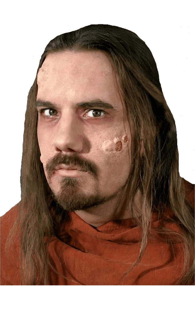 Includes: 3 black death spots, Make-up, Spirit gum, Instructions