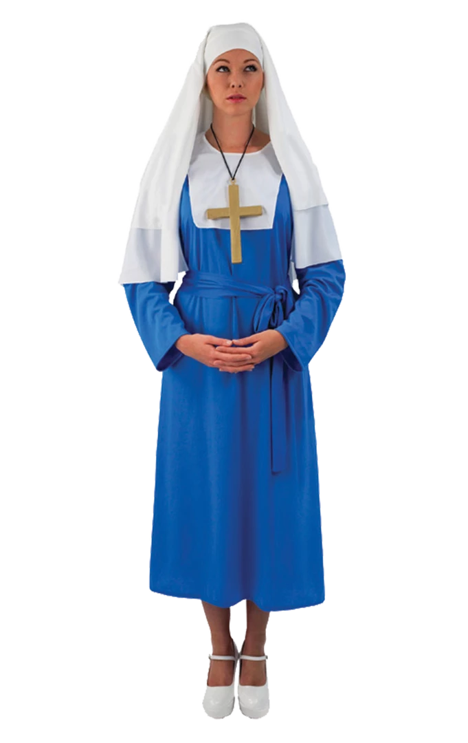 Includes: Blue Nun Dress, Headpiece, Belt