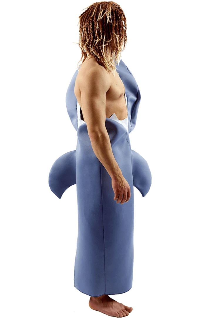 The Adult Deluxe Shark Victim Costume includes an off-the-shoulder bodysuit that’s designed to give the impression that a shark is in the process of eating you. Your body may fit in the shark mouth perfectly, but don’t worry, there’s room for one arm to freely wave for help. Who will be your hero or heroine and get you to safety?