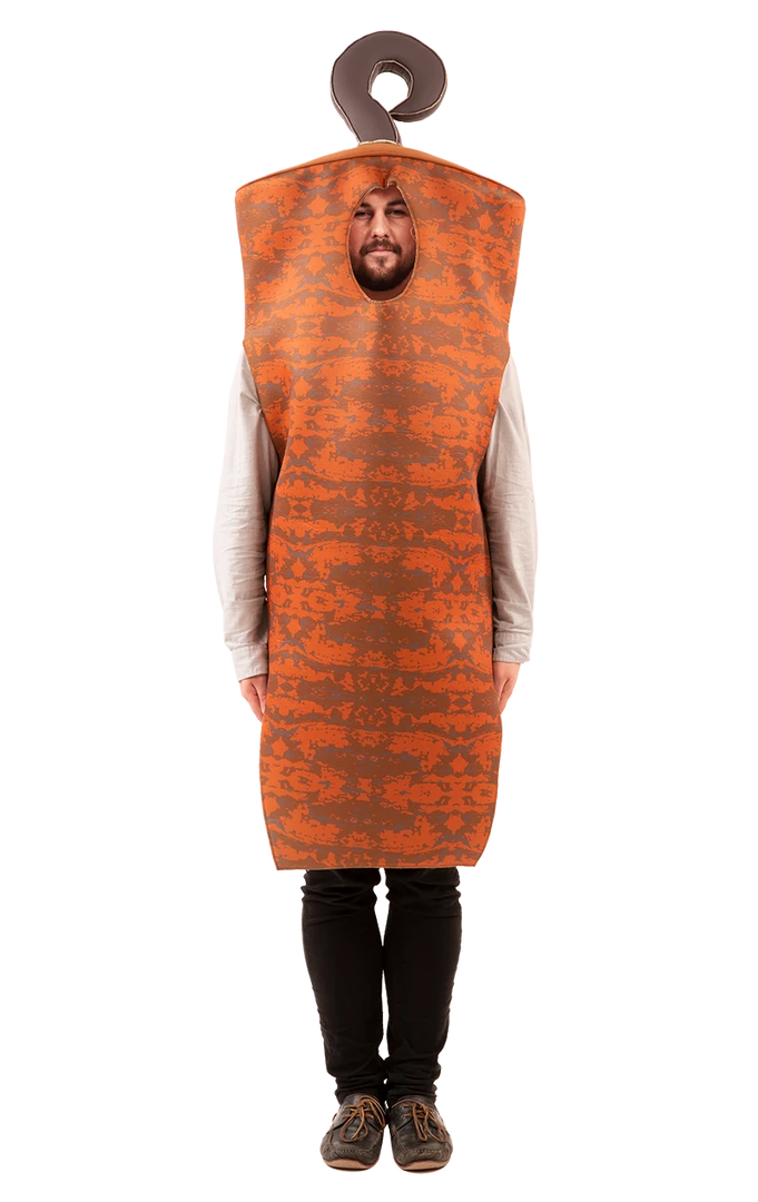 Everyone knows that the nation’s favourite food after a night out is a dirty, filthy Doner Kebab! Now you can dress up as this deliciously juicy pile of meat on your next lads night out in our exclusive Adult Doner Kebab Costume. Complete with the hook it hangs on, you can transform yourself in this kebab costume and get cannibalistic as you scoff your mouth with the delicious meat after the nights over. Now get yourself on the dance floor and show off all those prima-doner moves!