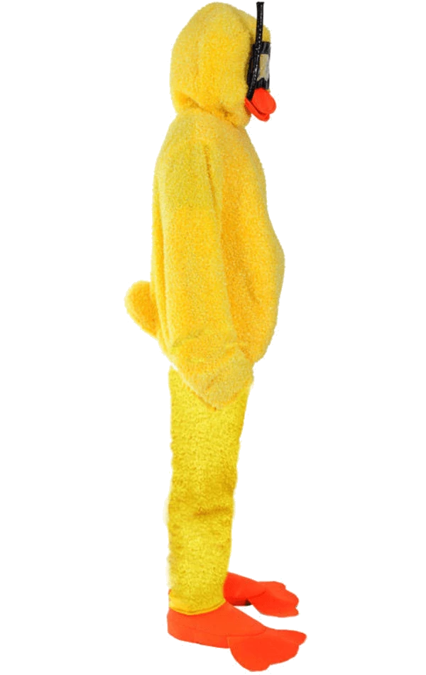 The Adult Rubber Duck Costume is made up of a fluffy yellow long-sleeved top, plus a pair of matching trousers with attached orange webbed feet. Completing the look is a duck headpiece with attached snorkel, so you can splash about without getting water in your eyes.