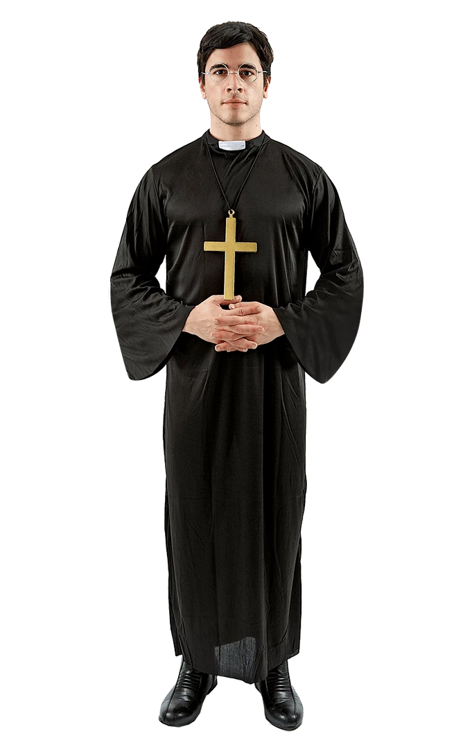 The Adult Religious Vicar Costume is inspired by the dress of the Christian Clergymen and is made up of a floor length black robe. Just add your own holy cross to complete the ultimate vicar look.