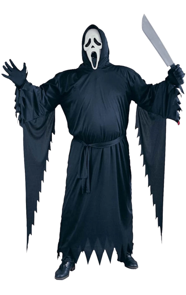Stalk your friends and make them scream this Halloween in our Plus Size Scream Stalker Costume. A comfortable black robe with a terrifying scream character facepiece. Chop everyone into little pieces and throw them to the dogs! Any fan of the movie will love this detailed character costume.