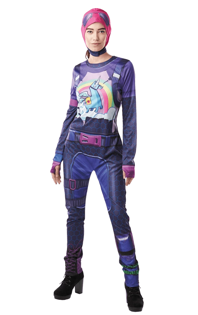 Want to truly immerse yourself into the bright and crazy world of Fortnite? Our Adult Brite Bomber Fortnite Costume – Deluxe is a piece of gaming history! Find her in the Item Shop… She may look cute and harmless, but as the eye of the storm closes in, Brite Bomber only needs the right weapon and she’s capable of taking down a whole squad on her own! Costume includes: Full jumpsuit with armband, snood and chug jug drink holder.