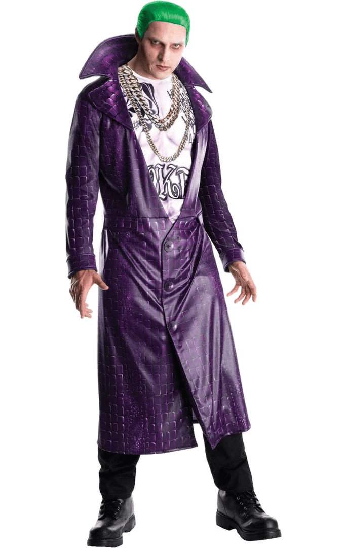 Get into character with Mens Arkham The Joker Costume, which features a long purple jacket with an attached printed t-shirt. The costume is based on Joker’s look from the Suicide Squad movie and many of his outfits in the comic-book series.