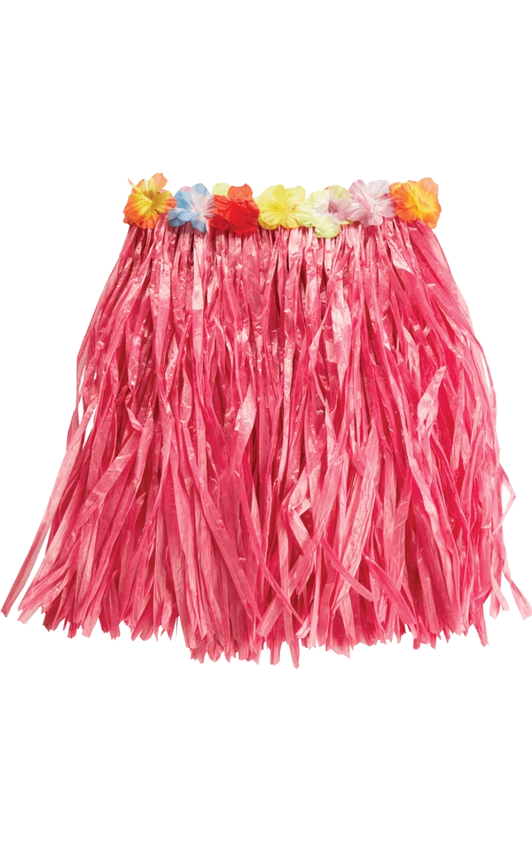 This fabulous Hawaiian Skirt comes in many different shades and has an elastic waist band decorated with flowers. Approx Length 50cm.