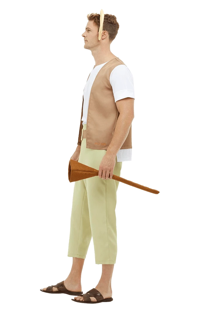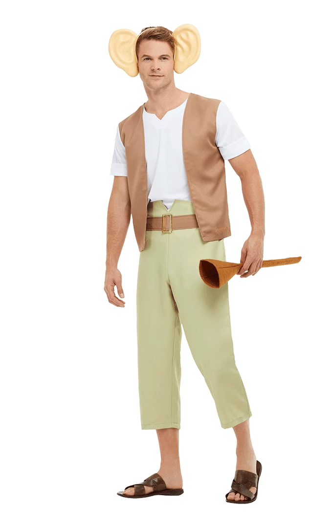 This costume BFG costume features green shorts, a top with attached waistcoat, his signature giant ears headband and a felt horn used to blow good dreams into the children’s minds.