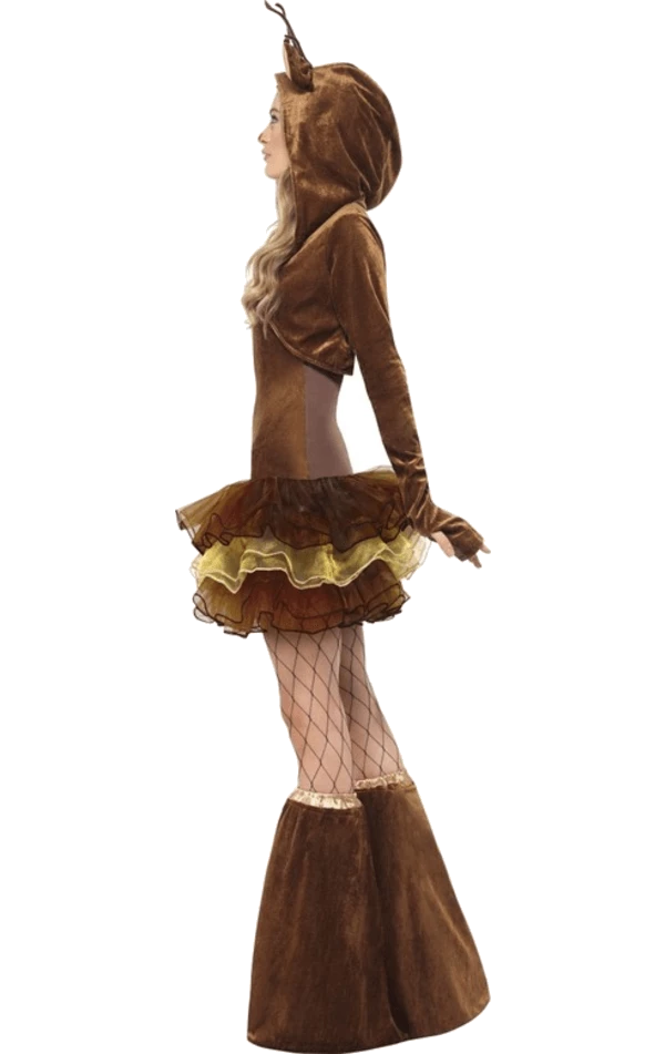 The Womens Reindeer Dress Costume is made up of a brown long-sleeved mini dress with a brown and gold tutu skirt. It also features a matching shrug with a hood, which has adorable antlers and ears on top and will have you looking like the sweetest Rudolph around. Completing the look is a pair of brown boot covers – they’re perfect for keeping you warm on a festive night out.
