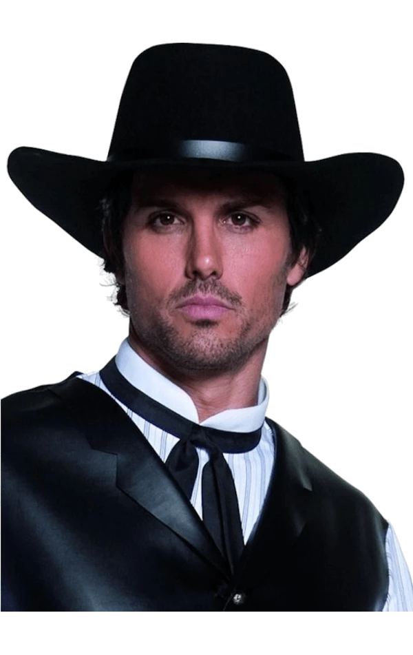 If you’re off to a rodeo, make sure you have the appropriate headwear to match your cowboy outfit. The聽Black Gunslinger Cowboy Hat聽for men features a black band across and high brimmed sides. So swing it around as you buck your bronco and get ready for a shootout at the next western fancy dress party hoedown.