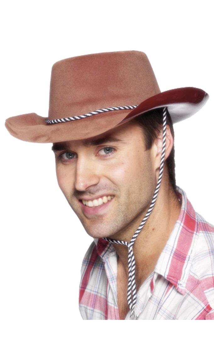 Planning on attending that fancy dress costume as the old Western classic gun drawer cowboy? Well if you’ve got your chaps, spurs, waistcoat, banana and moustache in place you’re missing only one key accessory- the Cowboy Brown Hat!