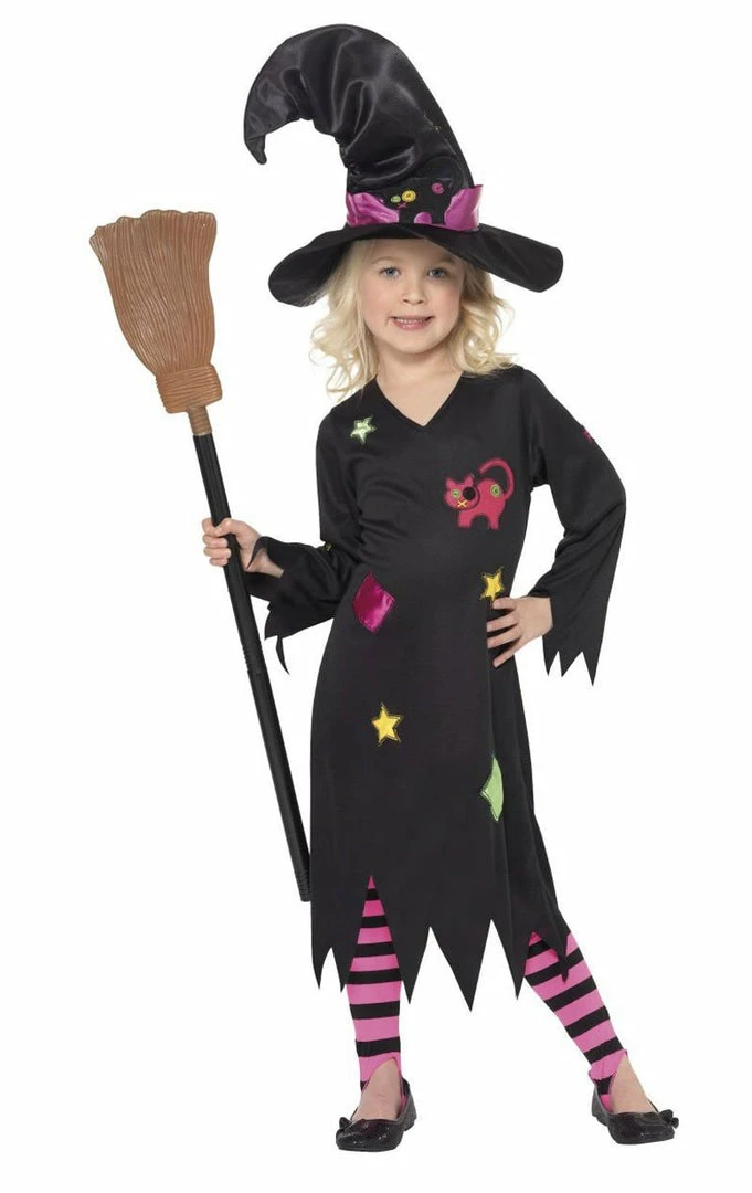 Witches aren’t known for being cute and oh so colourful, but there can always been exceptions! This lovely little Cinder Witch costume is actually very pretty for how ugly witches are suppose to be, but it doesn’t mean that this little girl can’t pretend to be sweet then cast an evil spell- BWA-HA-HA!
